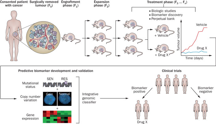 腫瘤是在新藥開發過程中動物模型較完善的一門學科。即使如此,臨(lin) 床前的療效還常常不能轉換化到臨(lin) 床認證。目前常見的腫瘤動物模型有小鼠接種腫瘤模型(包括鼠源或人源)、皮下異位移植腫瘤模型(PDX,包括體(ti) 外生長或直接來自患者)、原位移植腫瘤模型(PDOX,轉移性腫瘤模型)、轉基因“腫瘤鼠”模型、以及“Xenopatients/Avatars”等。小鼠接種模型因為(wei) 操作簡易、成瘤率高、價(jia) 格低廉等原因,尤其作為(wei) 篩選模型而被廣泛應用於(yu) 抗癌藥物研發。1969年,Rygaard and Povlsen醫生首次把來自一個(ge) 71歲直腸癌腫患的腫塊直接移植到缺乏胸腺細胞和T細胞的小鼠(裸鼠)改變了腫瘤研究領域。1這是人類首次把人類腫瘤腫塊移植到小鼠皮下生長,開始了腫瘤研究的新紀元。